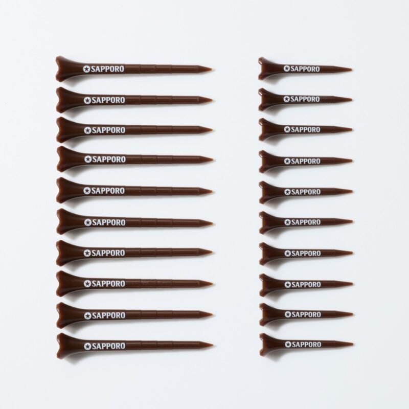 サッポロビール様との連携により、ビールの製造工程で生じる副産物と生分解性樹脂を組み合わせた、環境配慮型ゴルフティーを開発いたしました。